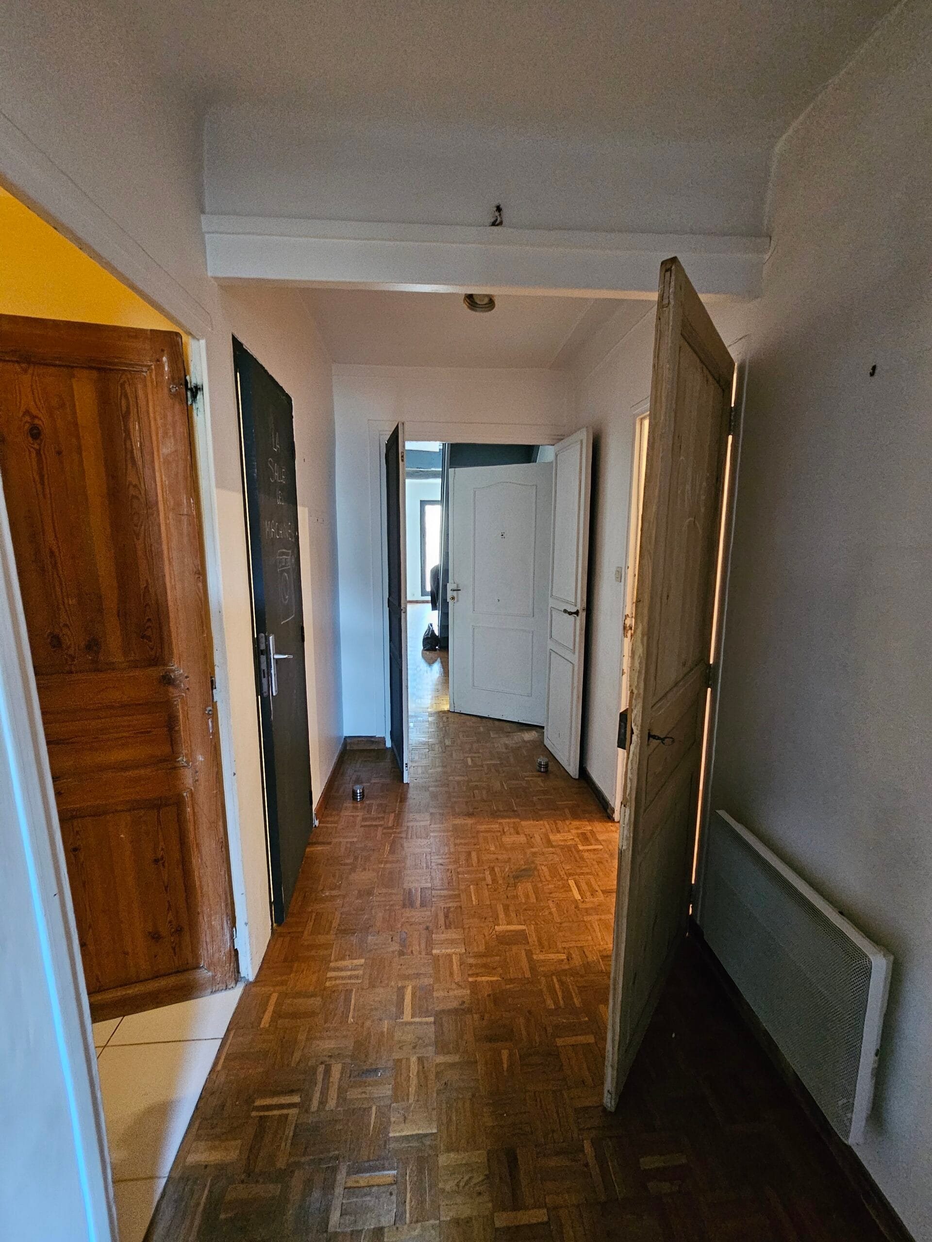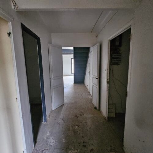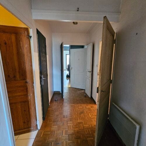 La rénovation précédente avait privilégié la rapidité au détriment de la qualité : parquets dépareillés, carrelage de mauvaise qualité, portes abîmées et dépareillées, isolation insuffisante.