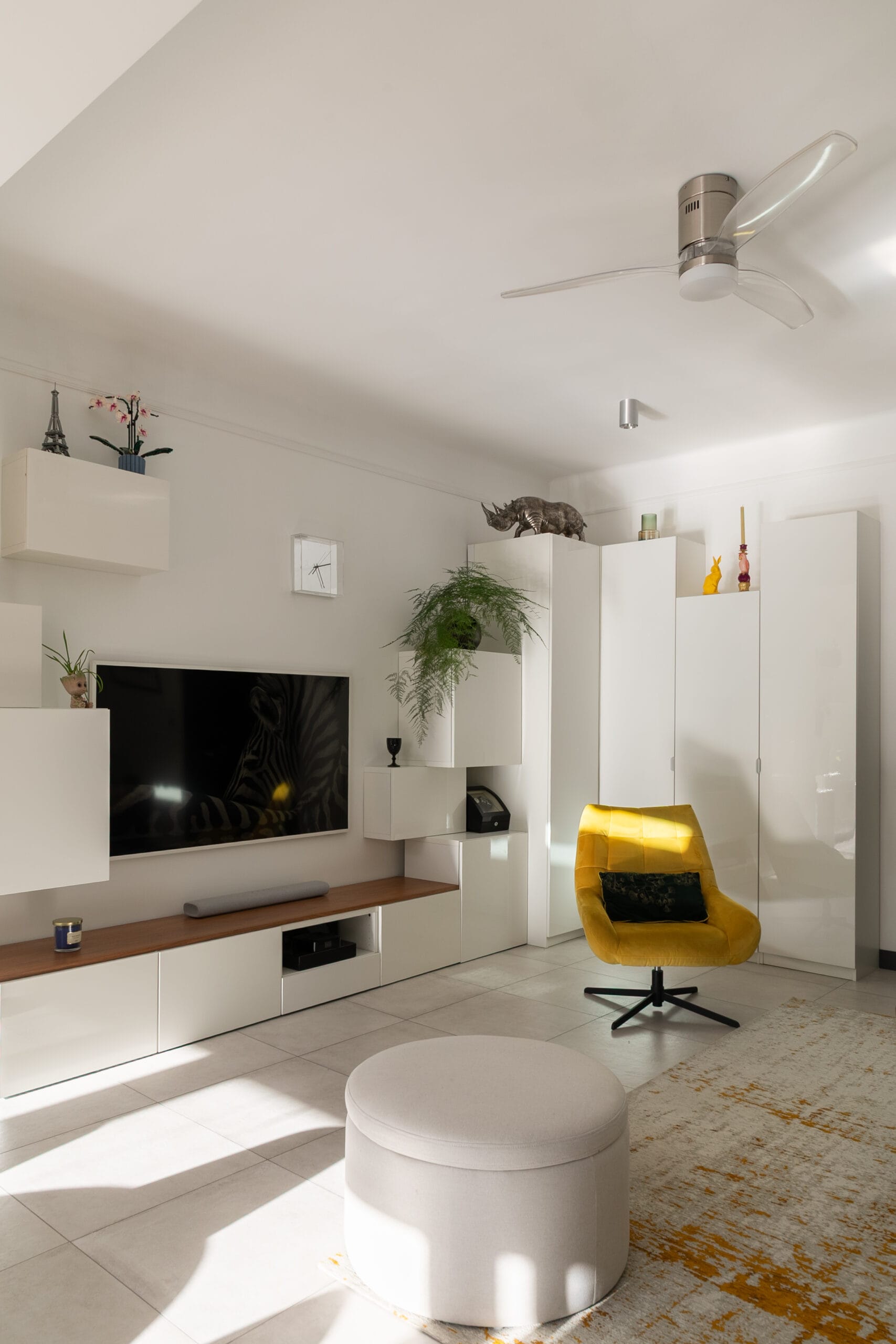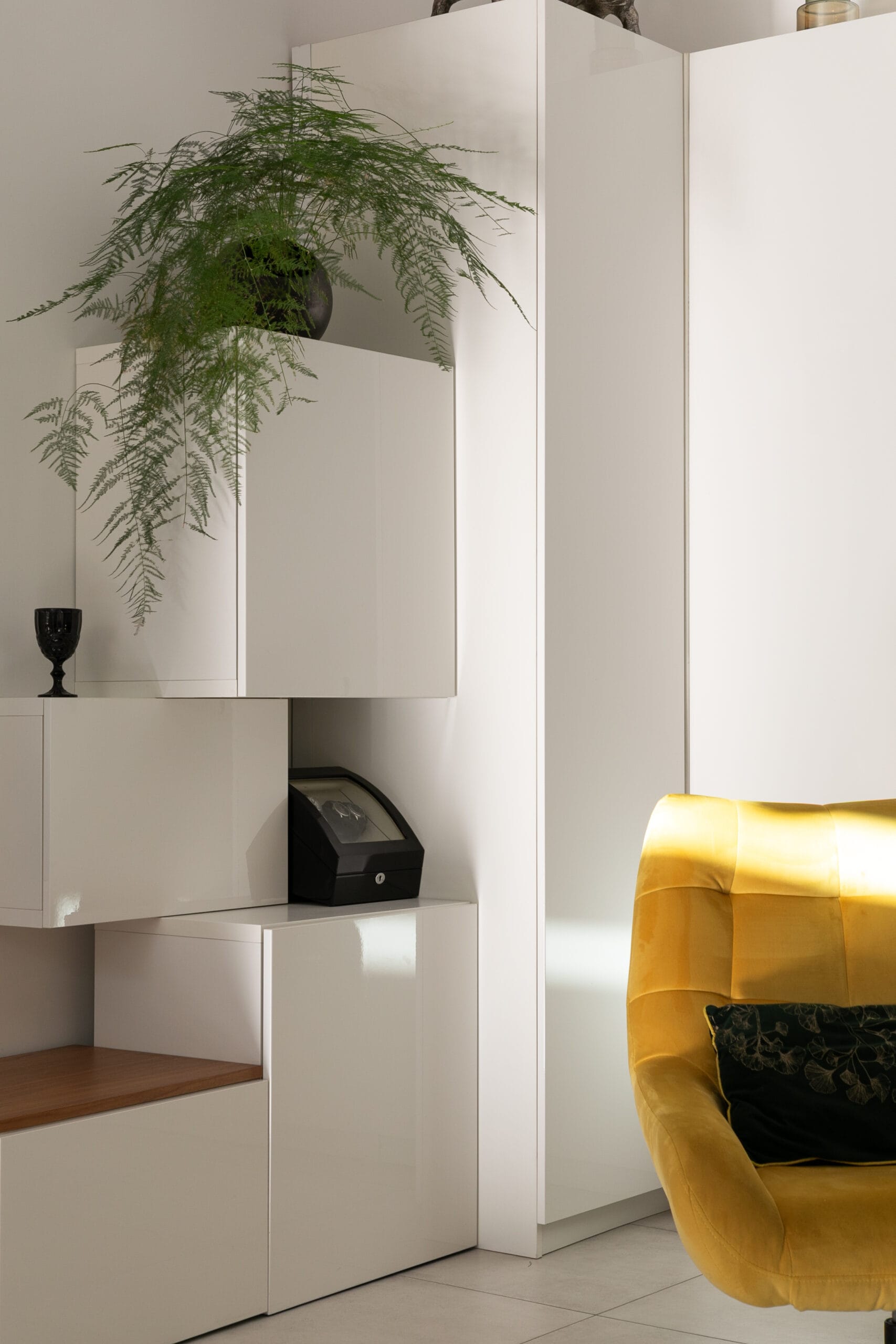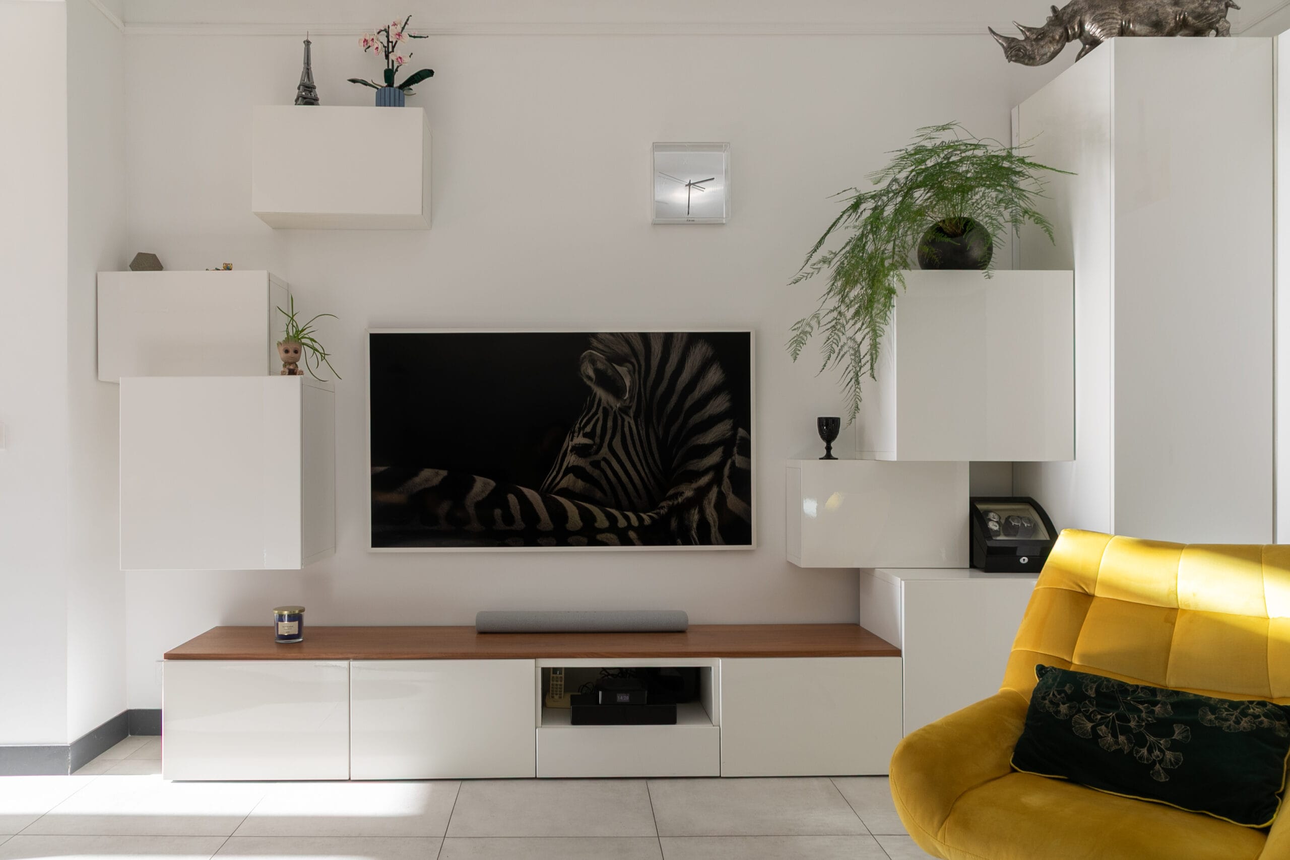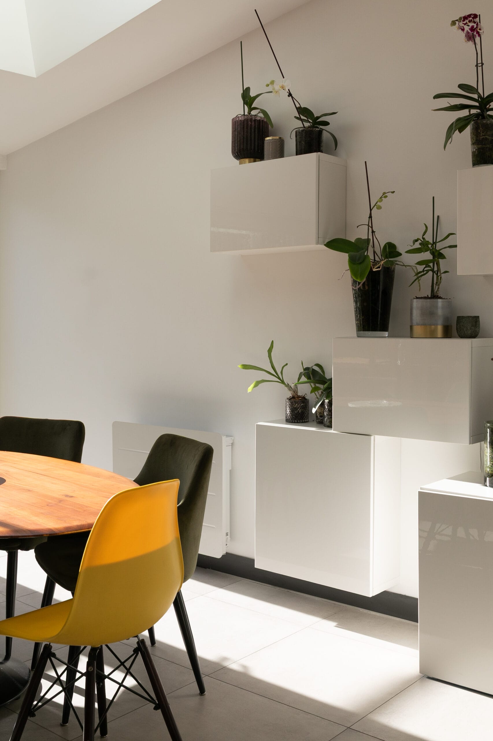 • Installation de meubles de rangement décalés pour un aspect moins massif et plus original.