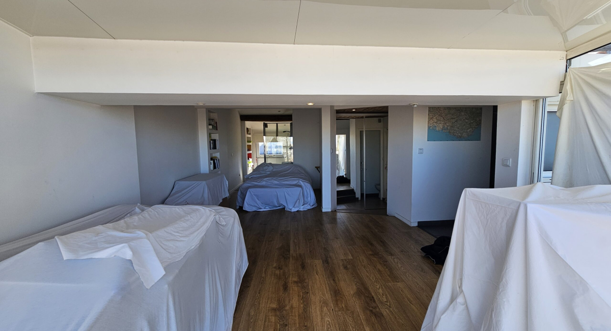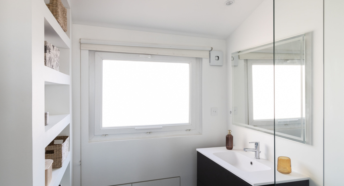 • Améliorer le confort thermique du logement, très exposé en été, par la pose de films thermiques sur le vitrages et la création d’un velum à la structure très discrète afin de ne pas impacter la vue sur l’extérieur.