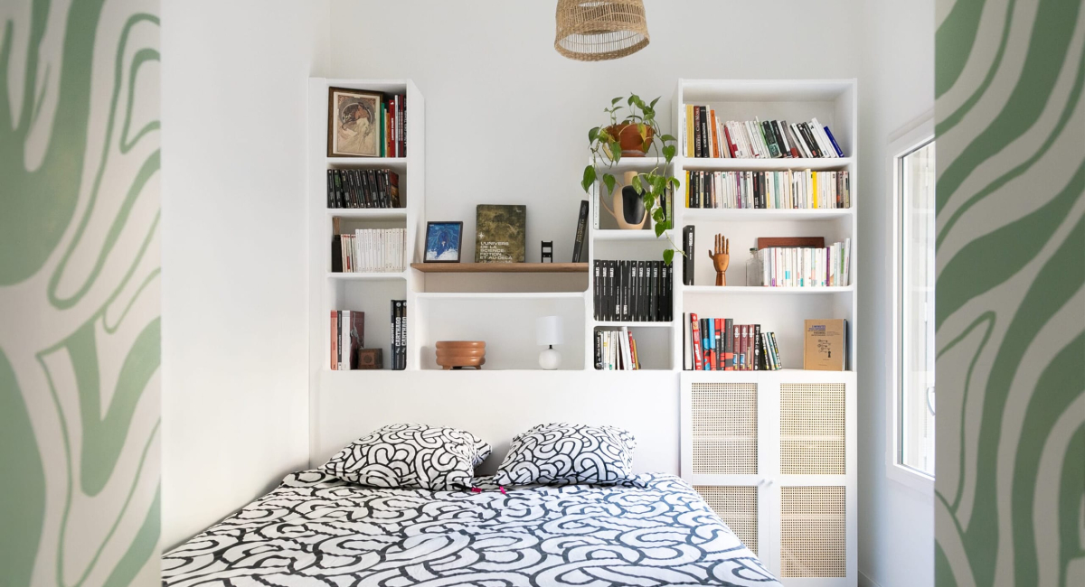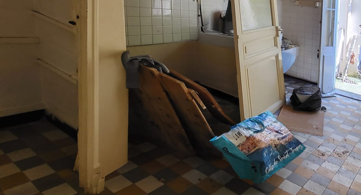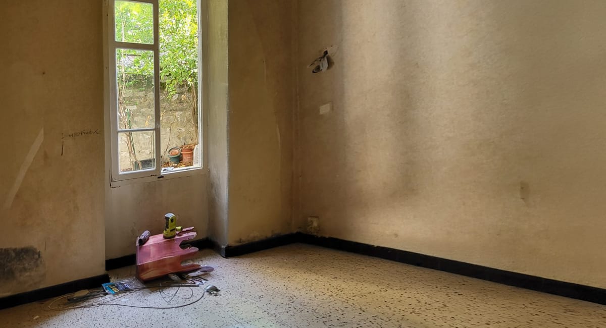 - Transformer la remise en chambre. Cette ancienne remise était en très mauvais état, nous avons dû notamment réparer la toiture qui fuyait, et faire une dalle pour mettre le sol au même niveau que le reste de l’appartement.